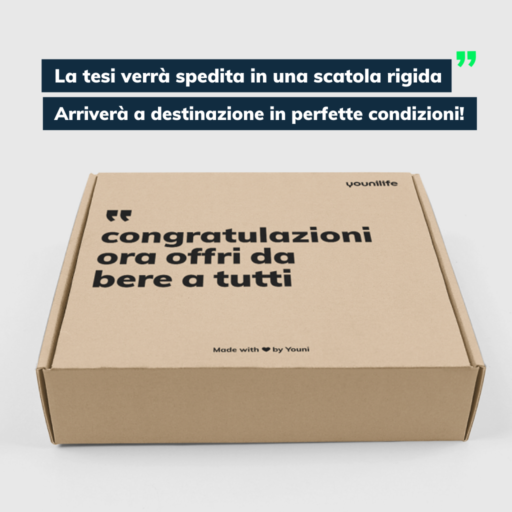 Carta: per questo modello utilizziamo carta più spessa (100 grammi). Il risultato? I fogli della tua tesi saranno di un bianco perfetto e le scritte non si vedranno in trasparenza sul retro.